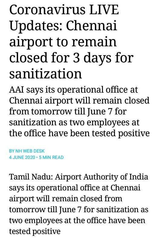 첸나이공항 2일간 폐쇄조치(6/6~6/7) 댓글 [3] 개