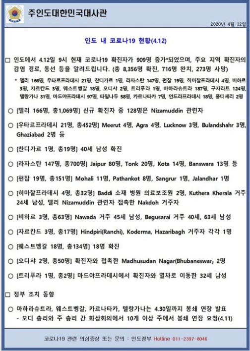 인도 봉쇄령 5.3 연장 관련 인도정부 세부지침 안내 |